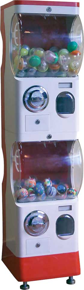 SIAL double multi Kapselautomat mit zwei Schächten kein Strom nötig robuster Korpus aus schlagfestem Kunstoff Griff Rollen Münzprüfer einstellbar für 1,00 € oder 2,00 € Höhe: 141 cm Breite: 34 cm Tiefe: 31 cm Gewicht: 16 kg unterschiedliche Befüllungen der beiden Schächte möglich. Option Springballadapter 45 mm möglich. Befüllung: Kapseln von 50 mm bis 70 mm oder Springbälle 45 mm Verpackungseinheit: 1 Automat Preis: (zzgl. 19% MwSt.): 167 Euro